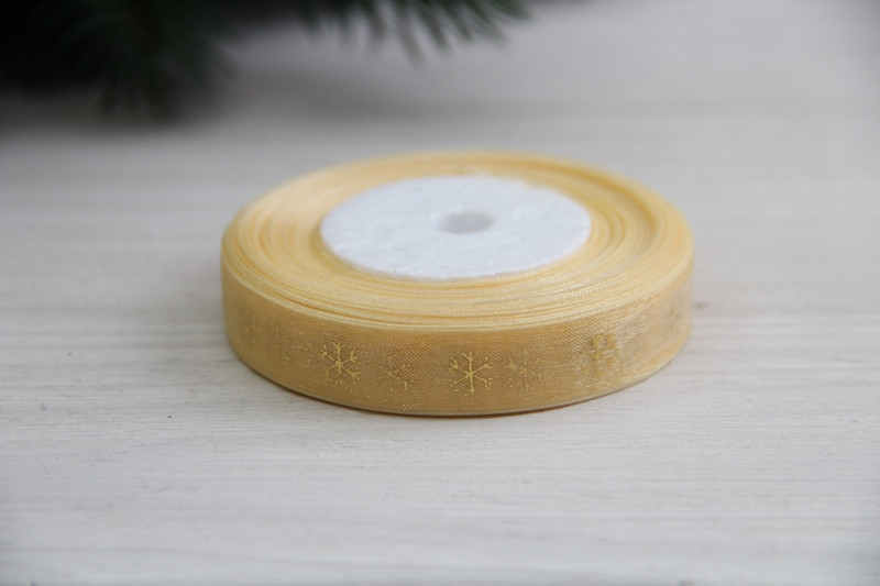 Органза " Дрібні золоті сніжинки " 1.2 см бежева рулон 22.5 метри